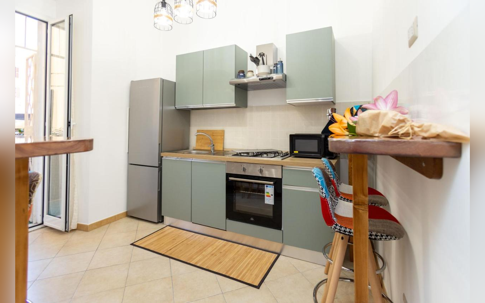 L’appartamento può ospitare fino a 4 persone grazie alla camera matrimoniale e al divano letto in soggiorno, ideale per famiglie o piccoli gruppi.