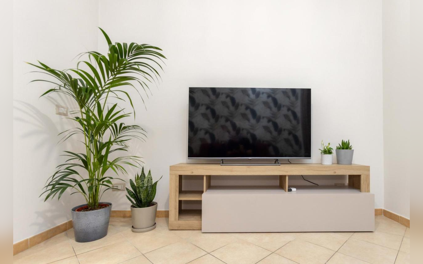 Ambiente luminoso con TV, tavolo da pranzo e spazio relax per fino a 4 ospiti.